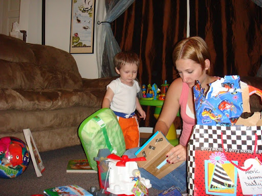 And finally, I got to open all those presents that I've been watching pile up for the past couple of months. I wasn't quite sure how to open them but Mommy helped out. I really just wanted what was inside anyway, and she looked like she was having fun ripping them open for me.